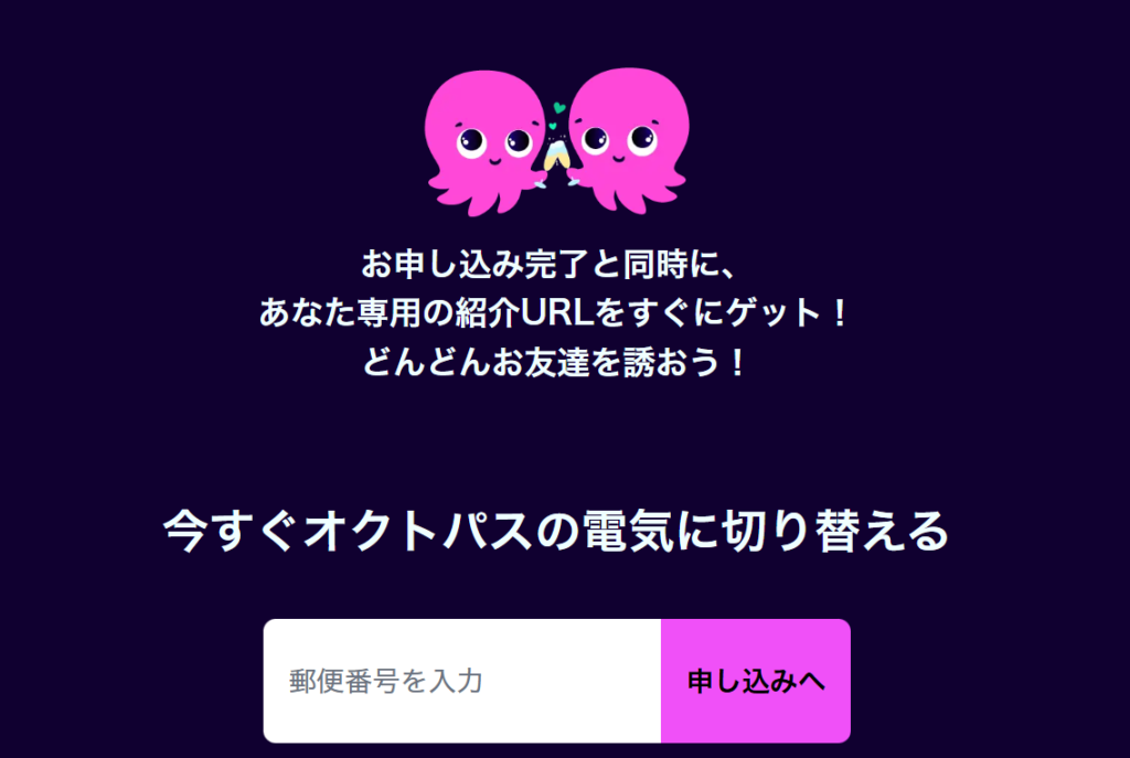 まず、オクトパスエナジーの公式サイトへアクセスします。